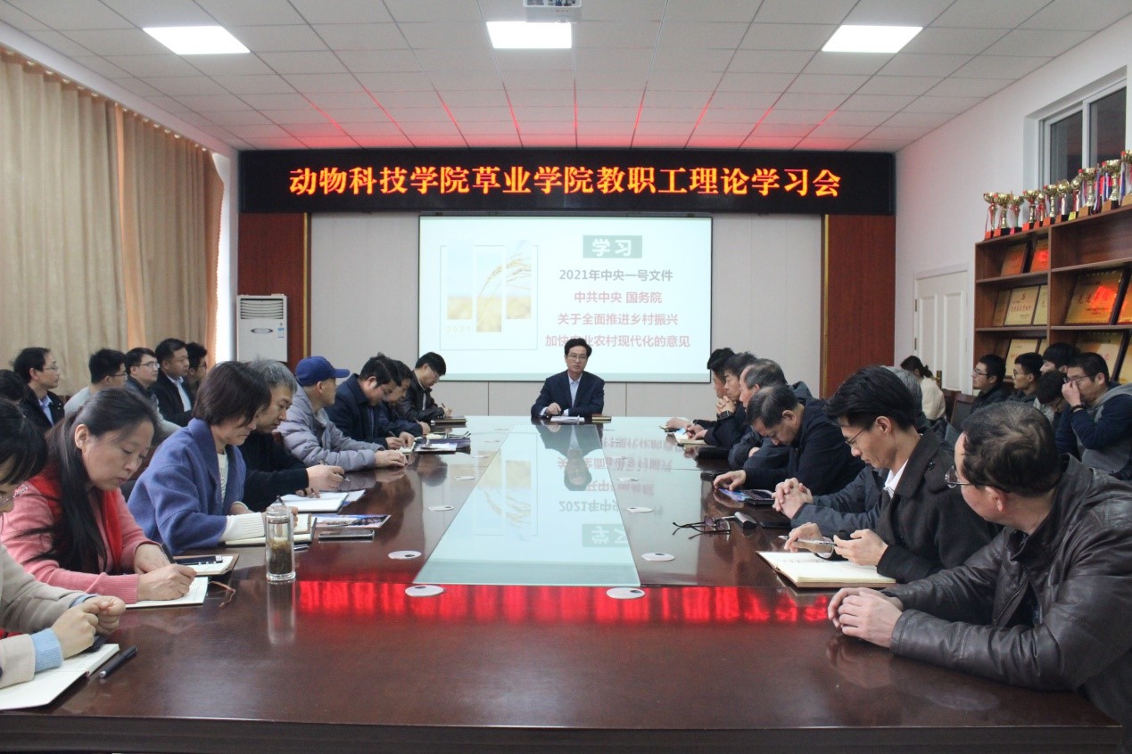 他强调,2021年是具有重要意义的一年,中央1号文件为做好今年的 “三农”工作明确了方向和路径,确定了促进脱贫攻坚和乡村振兴有机衔接的具体举措,确定了全面推进乡村振兴加快农业农村现代化的大政方针,需要我们联系实际认真学习领会文件精神。畜牧业和草业现代化在农业农村现代化和生态文明建设进程中具有非常重要的地位,作为beat365亚洲体育官方网站草业公司教师,要提高格局视野,着眼未来发展,努力提高教学科研水平,积极做好人才培养、科技创新和社会服务工作,提高公司在“三农”事业发展中的贡献度。