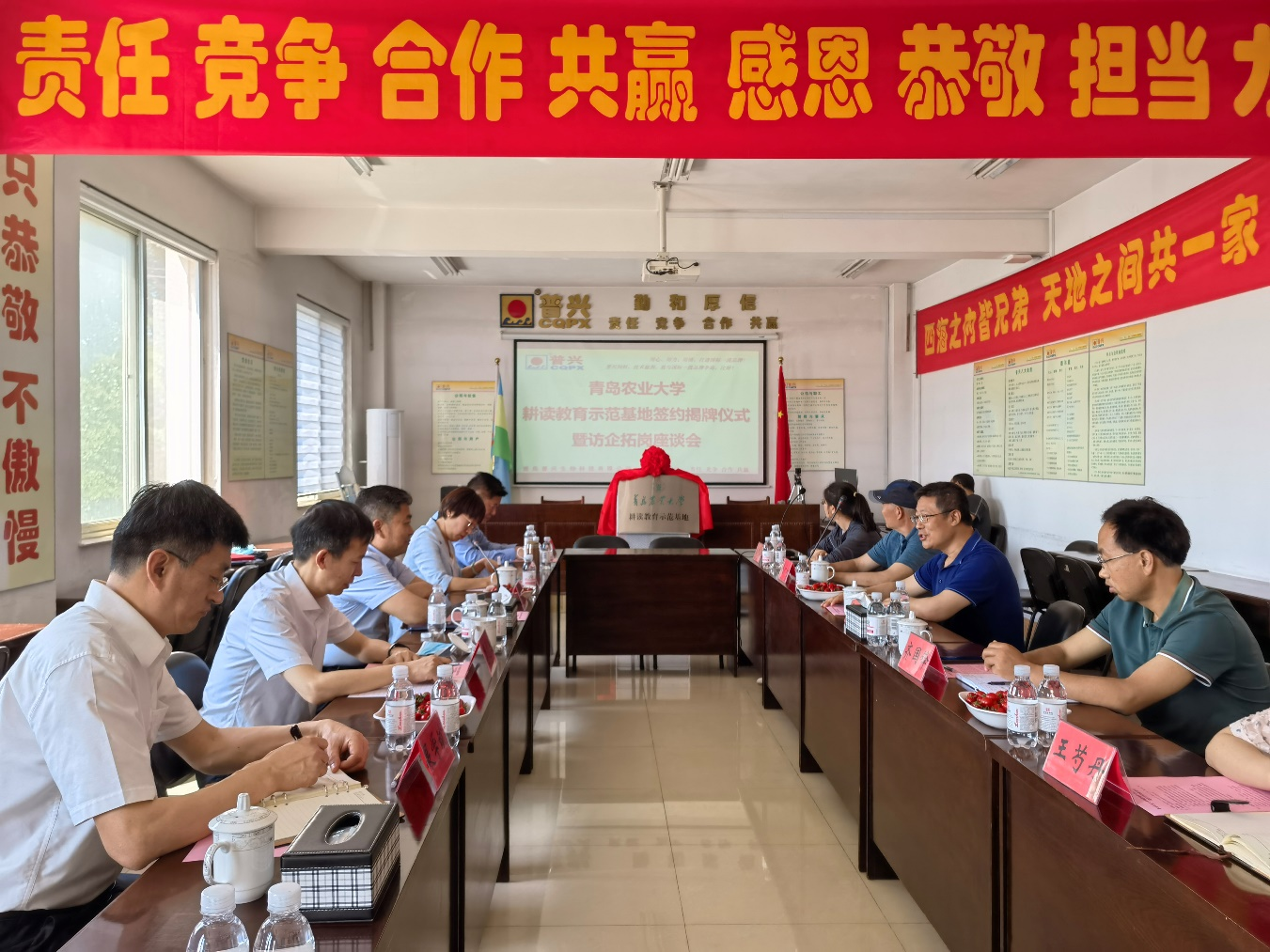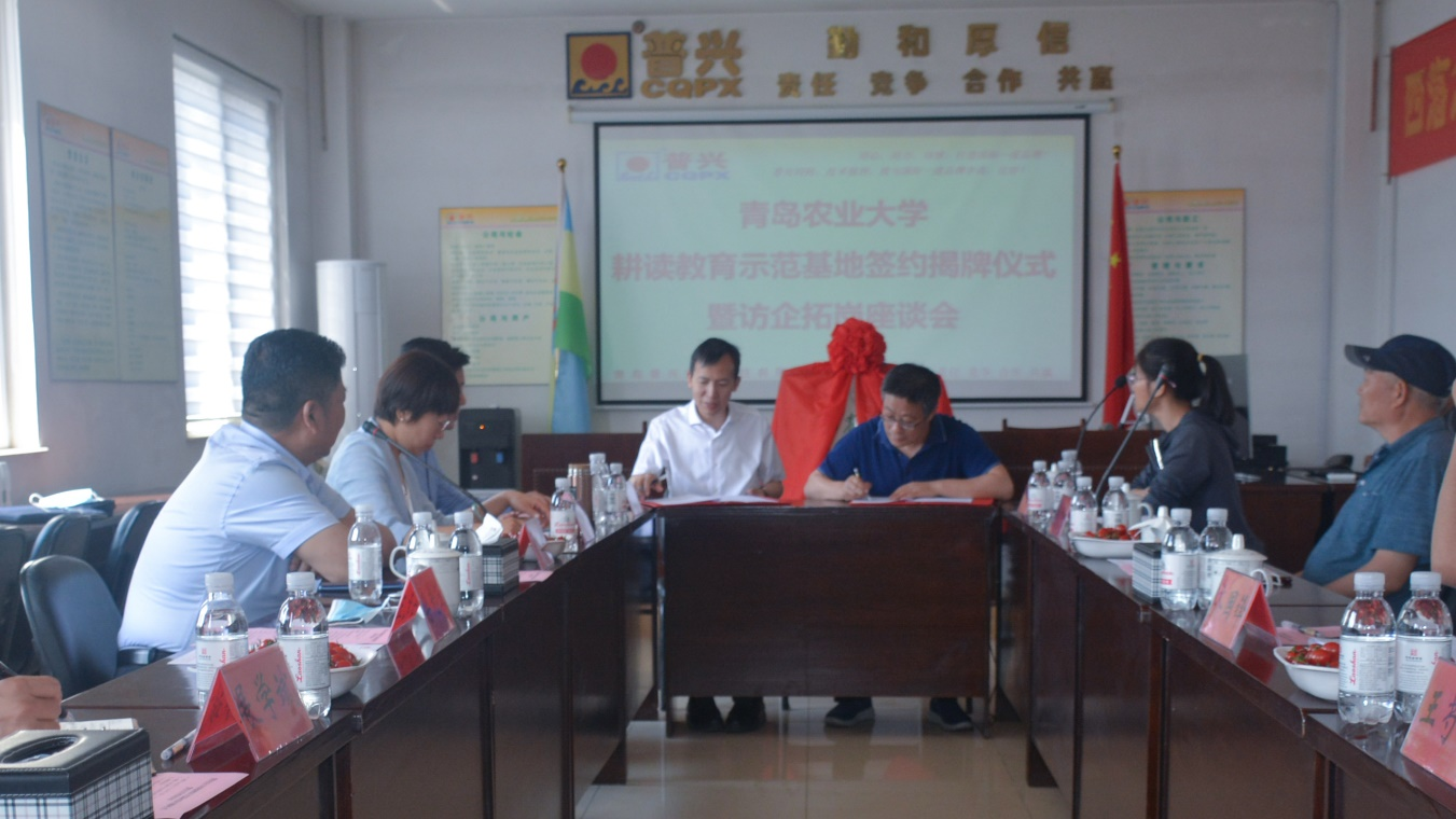 2022年5月30日上午,“beat365亚洲体育官方网站耕读教育示范基地”签约授牌仪式暨访企拓岗座谈会在青岛普兴生物科技有限公司举行。beat365亚洲体育官方网站原副董事长朱连勤,教务处处长张玉梅,beat365亚洲体育官方网站经理李光玉、党总支书记展学斌、副经理李文立、特种动物科学系主任崔凯,青岛普兴生物科技有限公司总经理吕广宙、副总经理齐国锋等参加活动。仪式由副经理李文立主持。