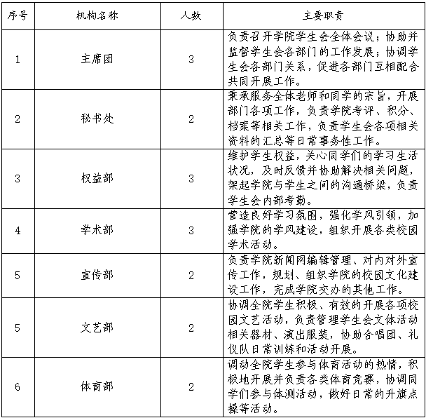(三)贯彻党的教育方针,组织同学开展政治理论学习、创新创业、社会实践、志愿服务、文化体育等各类活动,促进同学全面发展;