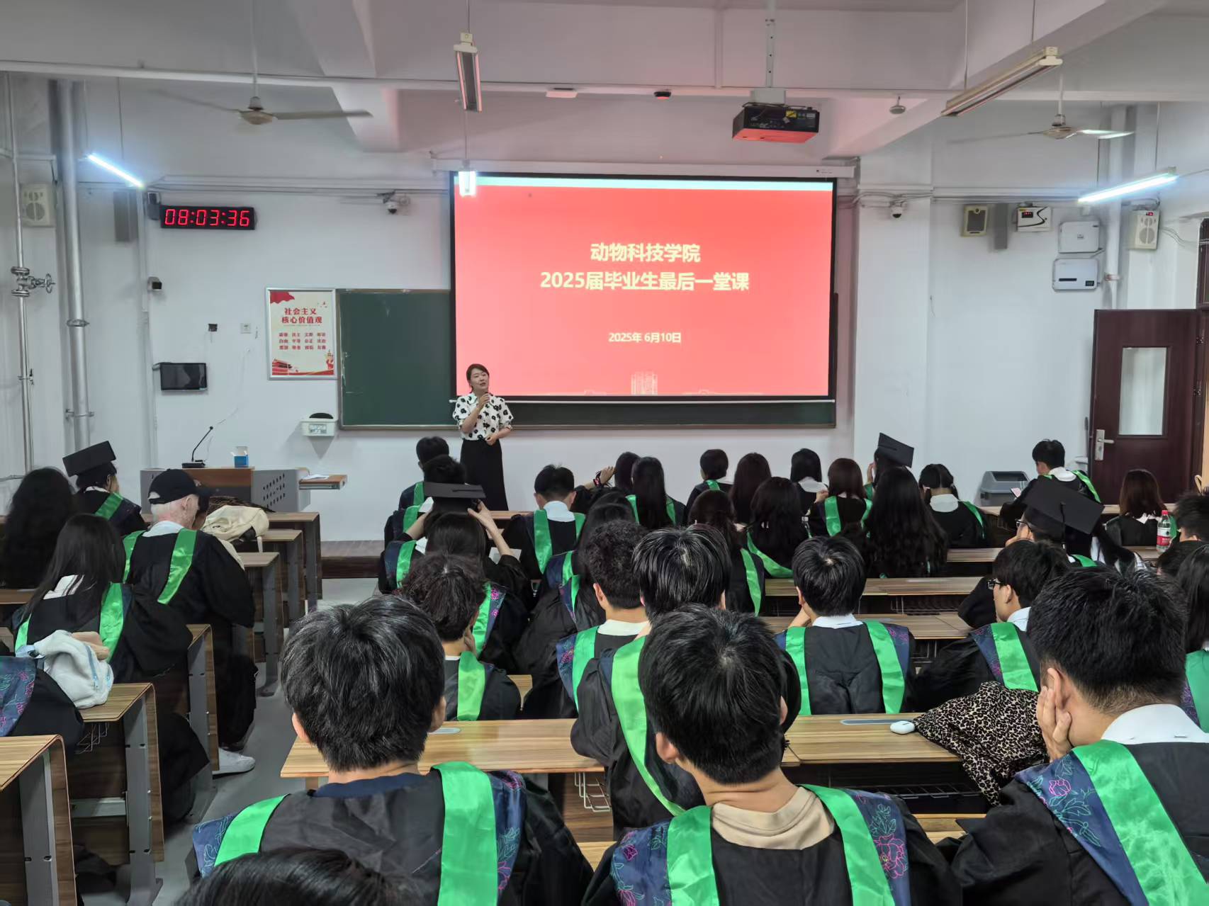 6月10日,beat365亚洲体育官方网站2025届本科毕业生“最后一堂课”在城阳校区教学楼举行。公司党委副书记、副经理辛丽轲,团委书记范楚琦,辅导员顾宜凯、董红欣、赵竞梅,2025届全体本科毕业生参加。活动主要围绕理想信念、就业指导、党员教育、安全教育、文明离校等内容进行。