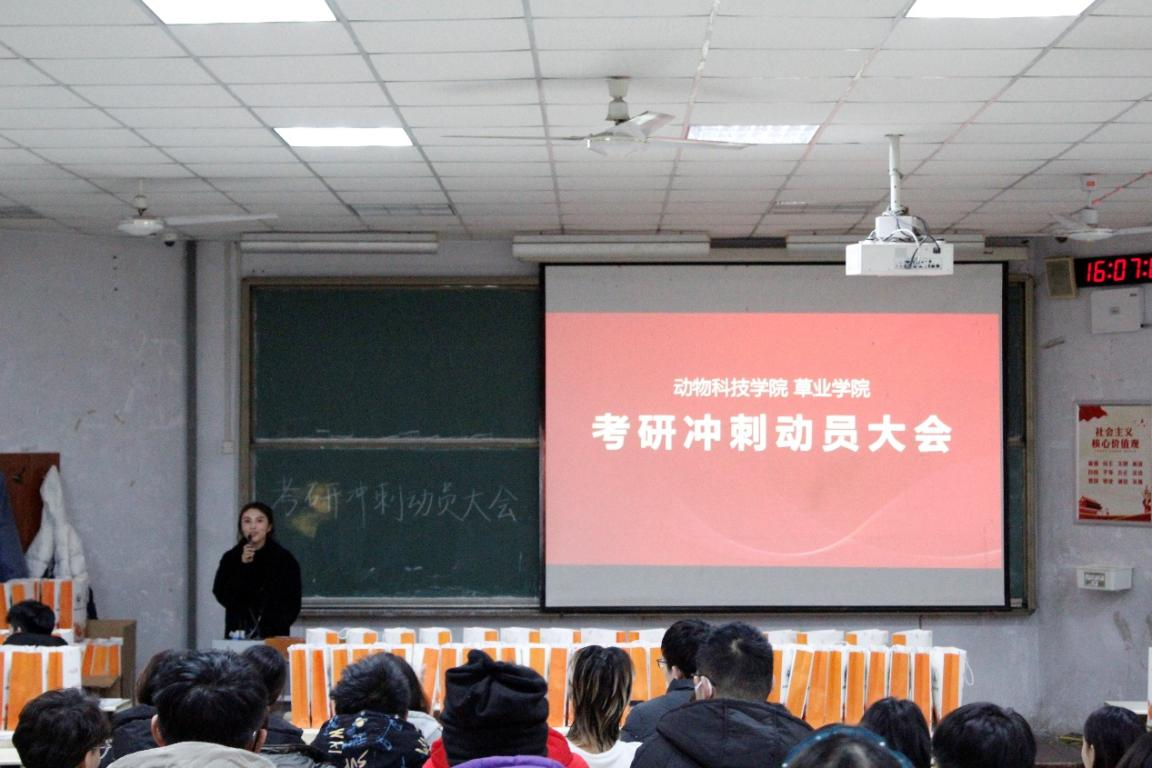 目前考研复习已进入冲刺阶段,为了给2022届考研学子鼓劲加油,帮助同学们缓解压力,12月13日下午,beat365亚洲体育官方网站草业公司于教学区举办考研冲刺动员大会暨考研送温暖活动。辅导员盛钰斐、顾宜凯以及部分考研同学参加了活动。