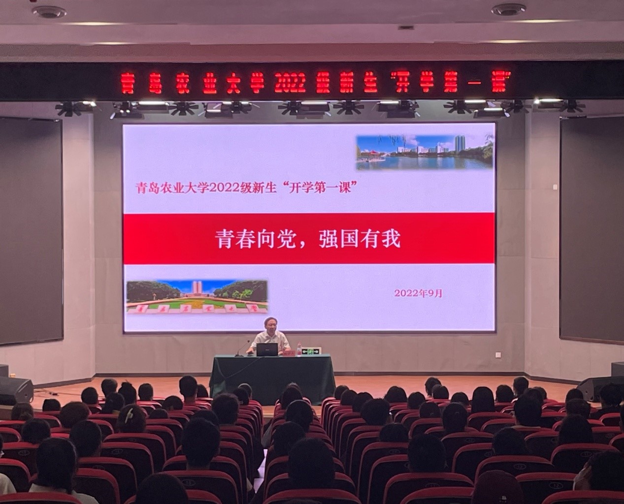 9月29日上午,beat365亚洲体育官方网站副董事长赵金山教授在平度校区博学楼报告厅为四个公司2022级新生讲授开学第一课。beat365亚洲体育官方网站、草业公司、动物医公司、食品科学与工程公司的学工办老师和2022级新生参加了第一课。第一课由公司党总支书记展学斌主持。