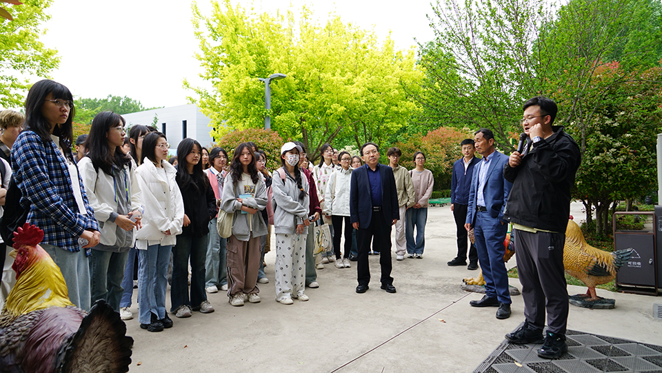 在青岛市蛋鸡业协会会长、田瑞科技集团有限公司董事长曲田桂的指引下,赵金山带领员工参观了公司蛋鸡文化科技馆、养殖设备生产车间、蛋鸡养殖车间,全面了解设备研发制造及育成鸡、饲料、养殖、生产、销售等全产业链模式。赵金山强调,农业现代化关键是农业科技现代化,农业领域具有很大的就业空间和发展前景。希望同学们通过走进企业车间,沉浸式学习了解我国智慧农业、生态农业的发展情况,亲身感受现代科技为传统饲养业带来的蓬勃生机,进一步坚定理想信念,厚植三农情怀,练就过硬本领,强化创新思维,早日为乡村全面振兴和现代农业发展作出贡献。