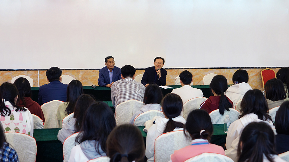 曲田桂向员工分享了智慧养殖业的发展趋势,介绍了集团作为国内智慧养殖标杆企业的发展目标和人才需求,欢迎同学们利用课余时间来到企业实习实践,同时希望加强与公司交流合作,共同推动智慧养殖产业升级和绿色发展,为乡村全面振兴和高质量发展贡献力量。