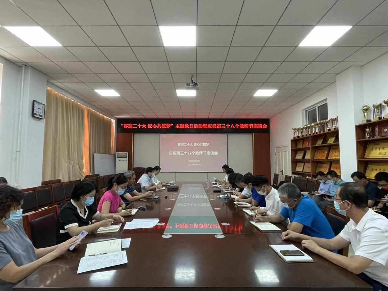 9月8日下午,公司党总支教师党支部举办“喜迎二十大 匠心共筑梦”主题党日活动,同时召开庆祝第三十八个教师节座谈会,公司党政负责人和全体教职工参加,会议由党总支书记展学斌主持。