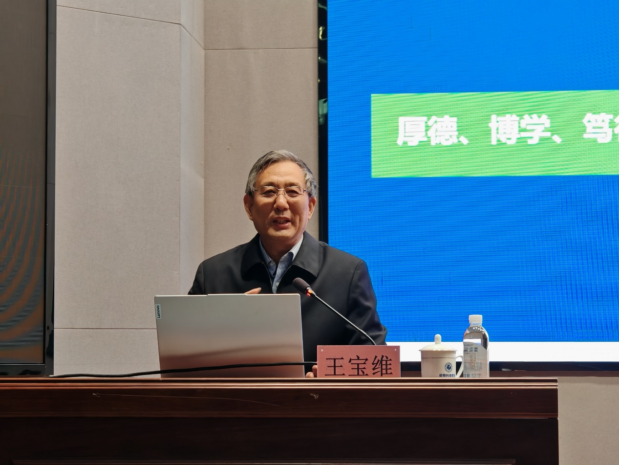 王宝维教授的报告题为《动物科学与动物医学专业老员工成才之路》。报告中,他讲述了自己从事科学研究、人才培养和社会服务的经历,通过具体案例,介绍了水禽研究团队的科研成果、国内外企业先进的生产模式、产业发展的现状与问题、新技术在实践中的应用等,讲述了优秀员工在兽药与疫苗研发、生物饲料等方面取得的成就。报告详细讲解了动物科学和动物医学专业涉及的学科内容以及两个专业之间的关系,对同学们如何努力学习、做好职业发展规划、提高综合素质和创新能力、明确考研与就业方向等方面进行了指导。王宝维教授希望同学们珍惜青春年华,保持阳光心态,勇于担当,迎接挑战,不断进取,成长为高素质的优秀人才。