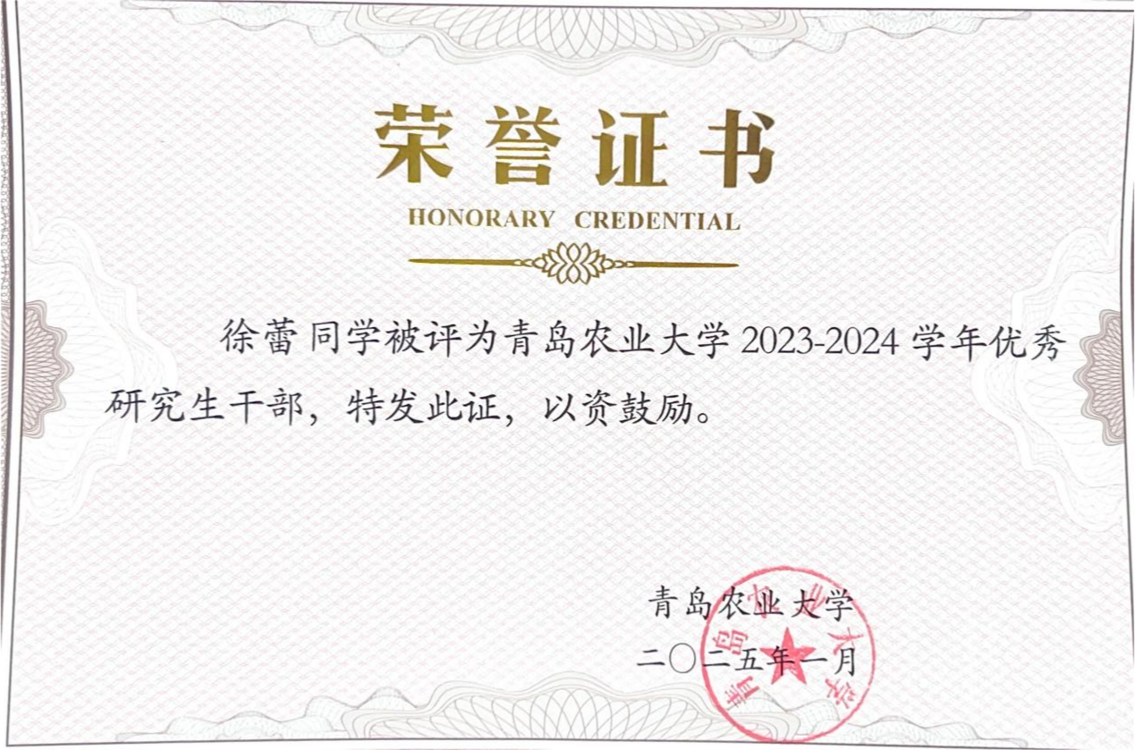 回顾求员工涯,徐蕾表示:“感谢老师们对我的悉心指导与引领,是你们的教导让我在知识求索中触摸到学术深度,在思想淬炼中感知到研究广度。感恩这场不期而遇的师生缘,更感谢每一次托举我前行的助力,我的成长有了笃定的方向。未来,我会继续用奋斗诠释新时代农科学子的担当作为。”