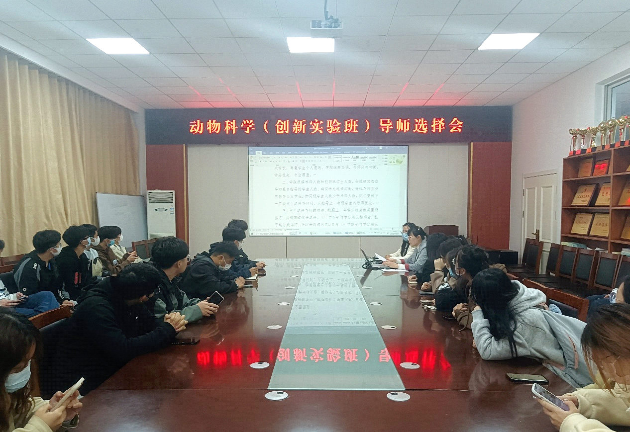 2022年10月27日,beat365亚洲体育官方网站在公司会议室召开动物科学专业创新人才实验班(以下简称“创新班”)导师选择会。会议由动物科学(创新实验班)专业负责人张贝贝副教授主持,2020级和2021级动科创新班的全体同学和班主任代表参加。