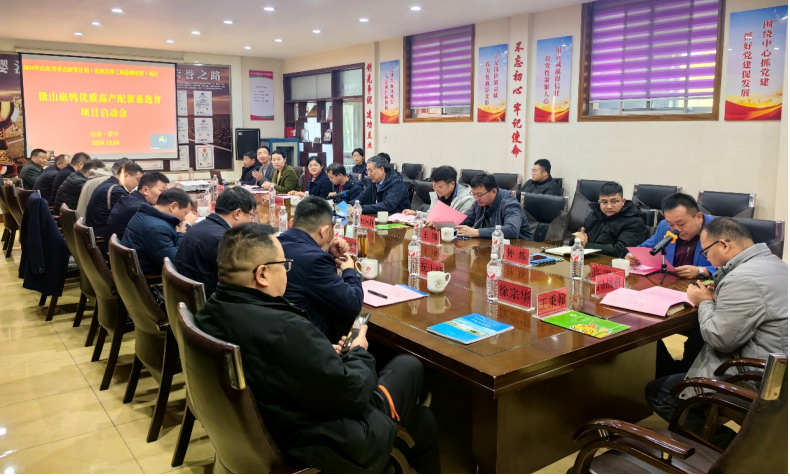 2024年12月4日,2024年山东省重点研发计划(农业良种工程)“微山麻鸭优质高产配套系选育”项目启动会在济宁市召开。本项目由樱源有限公司承担,beat365亚洲体育官方网站、山东省畜牧总站、聊城大学、微山县馨荷蛋鸭养殖有限公司共同参加。