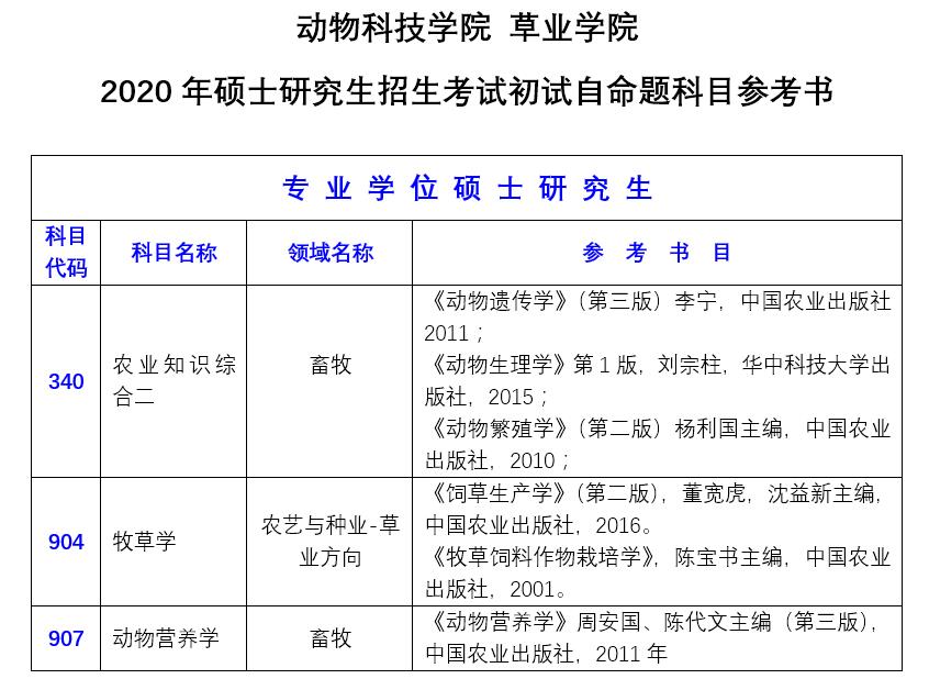 beat365亚洲体育官方网站草业公司2020年硕士研究生招生考试参考书